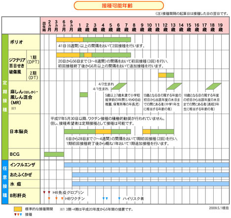 - 本人はそれらの病気にかかっていないが、周りの人がはしか、風しん、おたふくかぜ、みずぼうそうなどに最近かかっているとき。